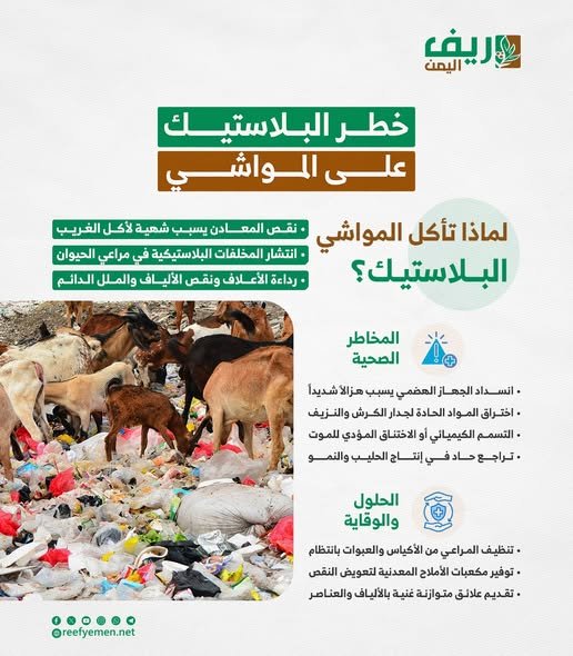تشهد المراعي المفتوحة في مختلف المناطق الريفية انتشاراً واسعاً لمخلفات البلاستيك والكراتين وغيرها، ما جعلها مصدر تهديد مباشر لصحة المواشي، خصوصاً الأبقار والأغنام والماعز، وتكمن خطورة هذه الظاهرة في ابتلاع الحيوانات لهذه المواد الغريبة، الأمر الذي يشكل مشكلة صحية واقتصادية تؤثر سلباً على المربين.