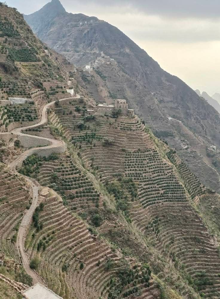 وثّق المصور المؤيد بن أحمد السامدي المدرجات الزراعية شديدة الانحدار في قرية الكبة سامد، عزلة اليمانية، مديرية الجعفرية بمحافظة ريمة، لتظهر براعة الإنسان اليمني في تحويل التضاريس الوعرة إلى مساحات زراعية مستدامة منذ القدم.