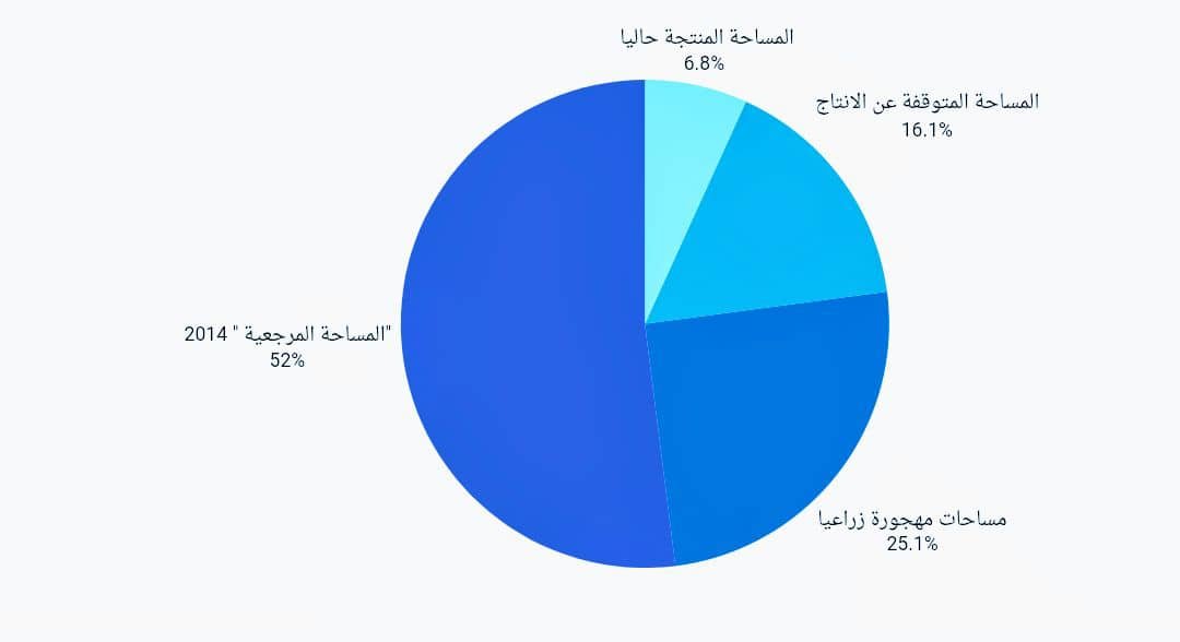 تكشف البيانات الواردة في كتاب الإحصاء الزراعي السنوي، معززة بالمسوحات الميدانية، عن تراجع مخيف في القطاع الزراعي بمحافظة لحج؛ ففي عام 2014، كانت المساحة المزروعة بالطماطم تبلغ 325 هكتاراً، لتهبط في عام 2022 إلى 155 هكتاراً، بنسبة انخفاض بلغت 52%.
