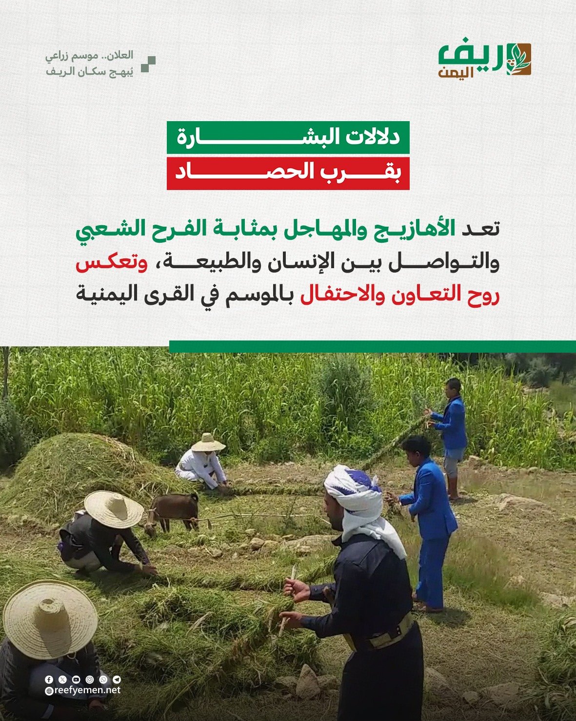 ويشكل العلان مناسبة للاحتفال الشعبي، إذ تتردد في القرى الأهازيج والمهاجل التي تمثل بشارة بقرب الحصاد، وتعبيراً عن العلاقة الوثيقة بين الإنسان والطبيعة، في مشهد يعكس روح التعاون والبهجة التي ترافق الموسم الزراعي في الريف اليمني.