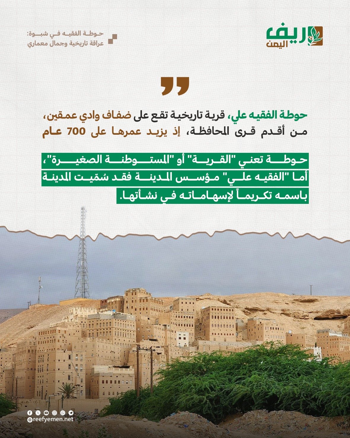 تعد حوطة الفقيه علي، الواقعة على ضفاف وادي عمقين بمحافظة شبوة في جنوب اليمن، من أقدم القرى في المنطقة، إذ يعود تاريخها إلى أكثر من 700 عام.