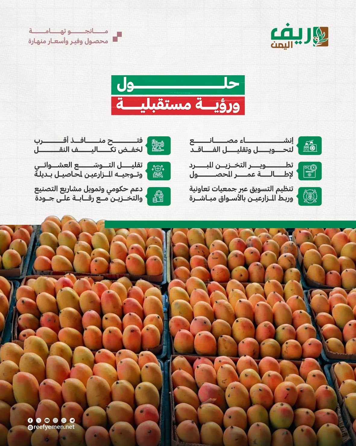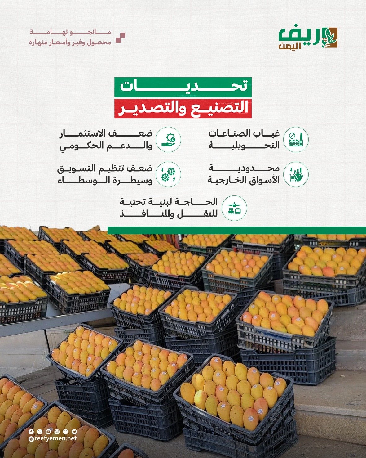 أزمة المانجو في تهامة هذا العام تكشف مفارقة الإنتاج الوفير مقابل انهيار الأسعار، حيث يغرق السوق المحلي بكميات ضخمة دون قدرة على الاستيعاب أو تصدير فعال، ما يضع المزارعين أمام خسائر لا تغطي تكاليف الري والعناية والنقل، ما يهدد استمرارية زراعة المانجو في تهامة، التي تعد مصدر رزق رئيسي لآلاف الأسر.