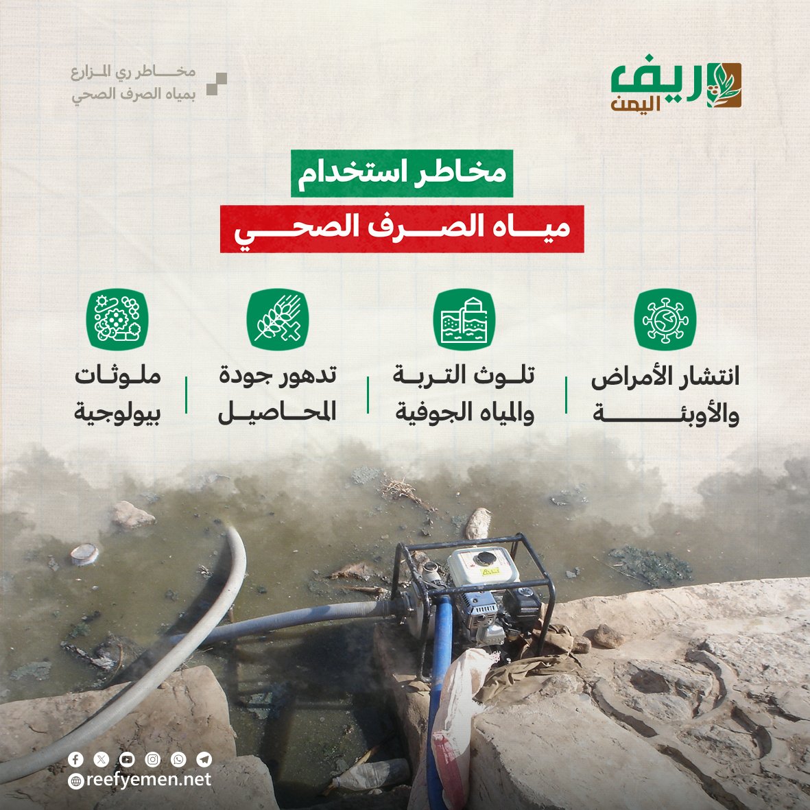 يتجاهل بعض المزارعين المخاطر الصحية التي يمكن أن يسببها عملية ري المزارع بمياه الصرف الصحي حيث تحتوي على ملوثات بيولوجية وكيميائية تؤثر سلباً على صحة الإنسان والبيئة.
