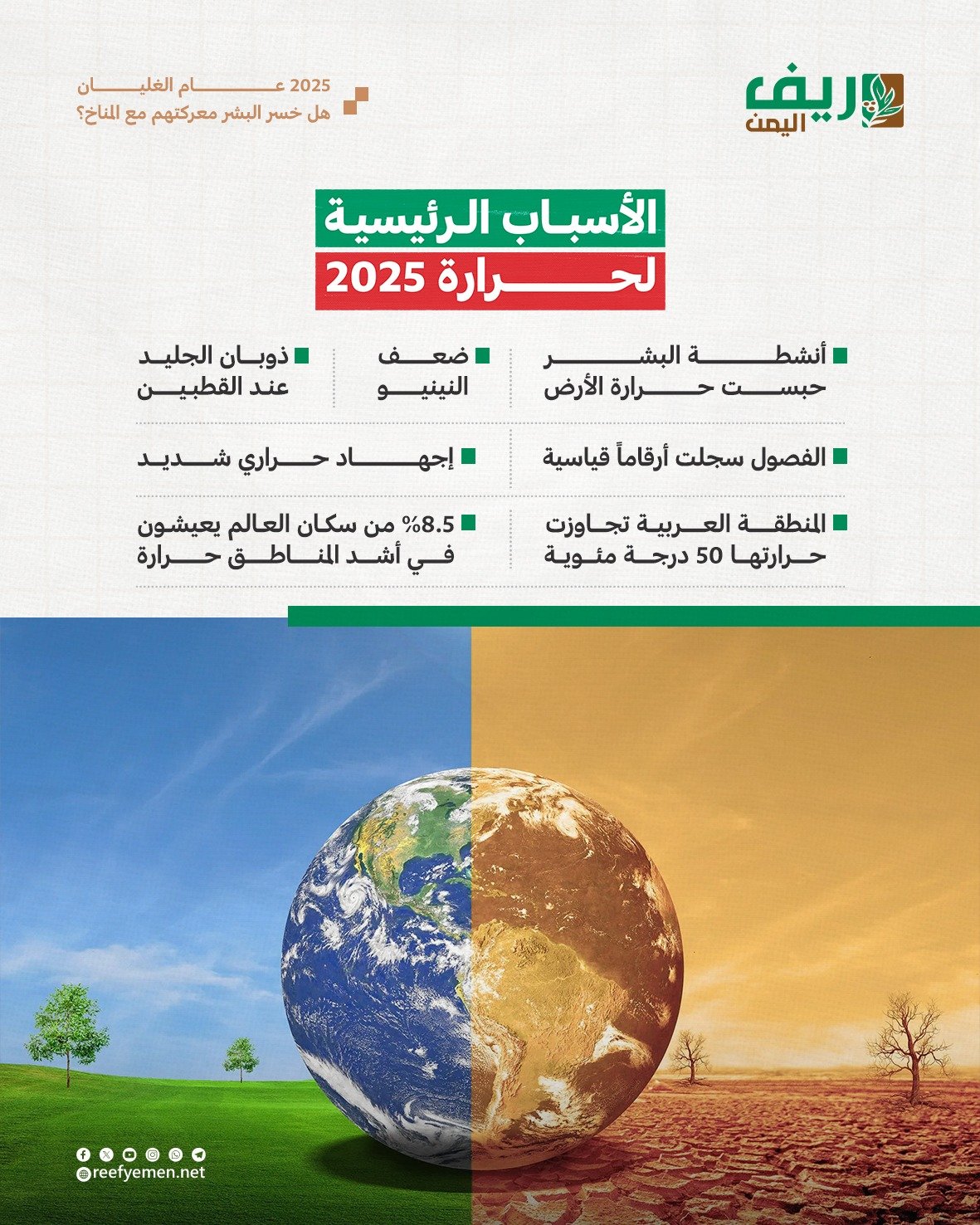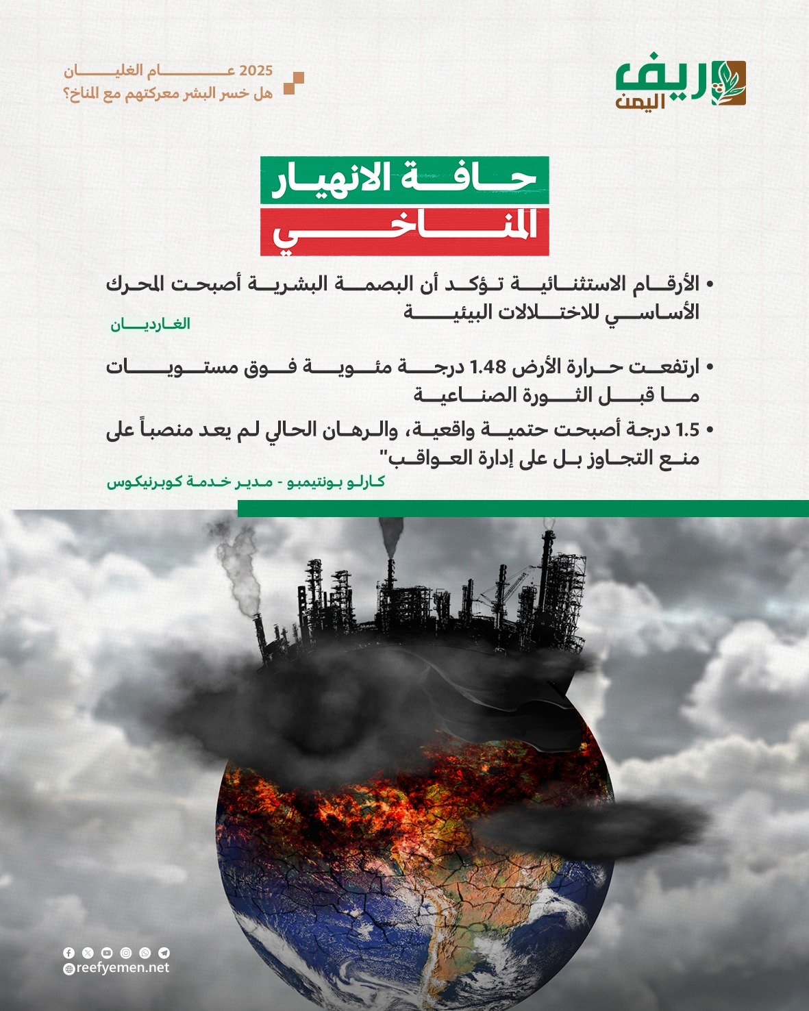 وفقاً لتقارير المنظمة العالمية للأرصاد الجوية استمر عام 2025 في تكريس سلسلة من السنوات “غير العادية”، حيث سجل متوسط درجات حرارة الهواء السطحي ارتفاعاً بنحو 1.48 درجة مئوية فوق مستويات ما قبل الثورة الصناعية وهو ما يضع العالم على حافة الهاوية.
