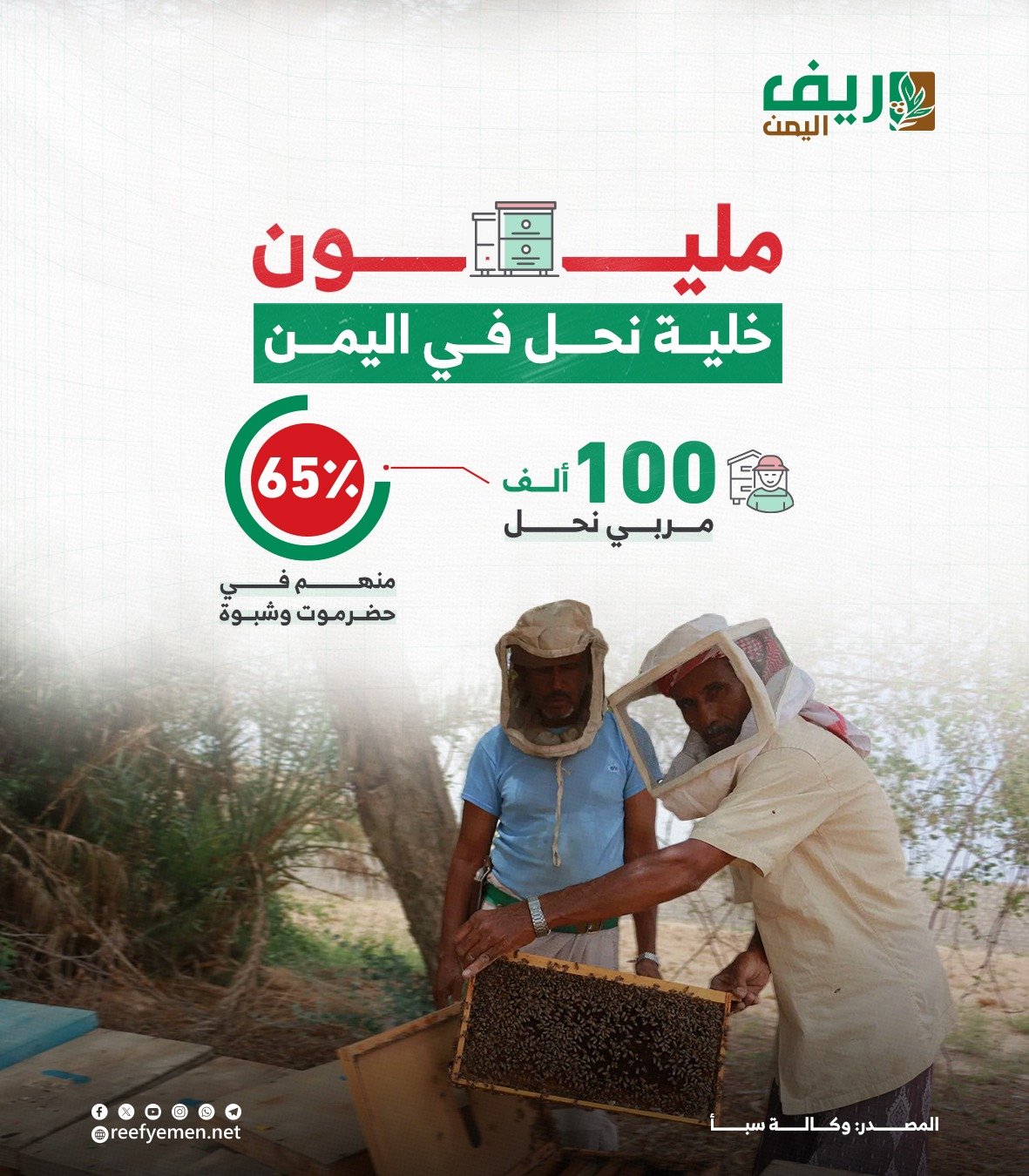 مليون خلية نحل في اليمن ✍️ أمة الغفور السريحي 📅 6 أبريل 2026 💬 0 تعليق كشف رئيس المركز الوطني للعسل الدكتور عبدالعزيز زعبل، عن وجود نحو مليون خلية نحل حالياً في اليمن، يعمل في تربيتها قرابة 100 ألف شخص، منهم 65 بالمائة في محافظتي حضرموت وشبوة. #ريف_اليمن #العسل_اليمني 📌 الوسوم: العسل اليمني , اليمن , تربية النحل , عدن , مدينة عدن شارك المقال: فيسبوك | تويتر | تليجرام قد يعجبك أيضاً: المواد ذات الصلةأكثر من مؤلف