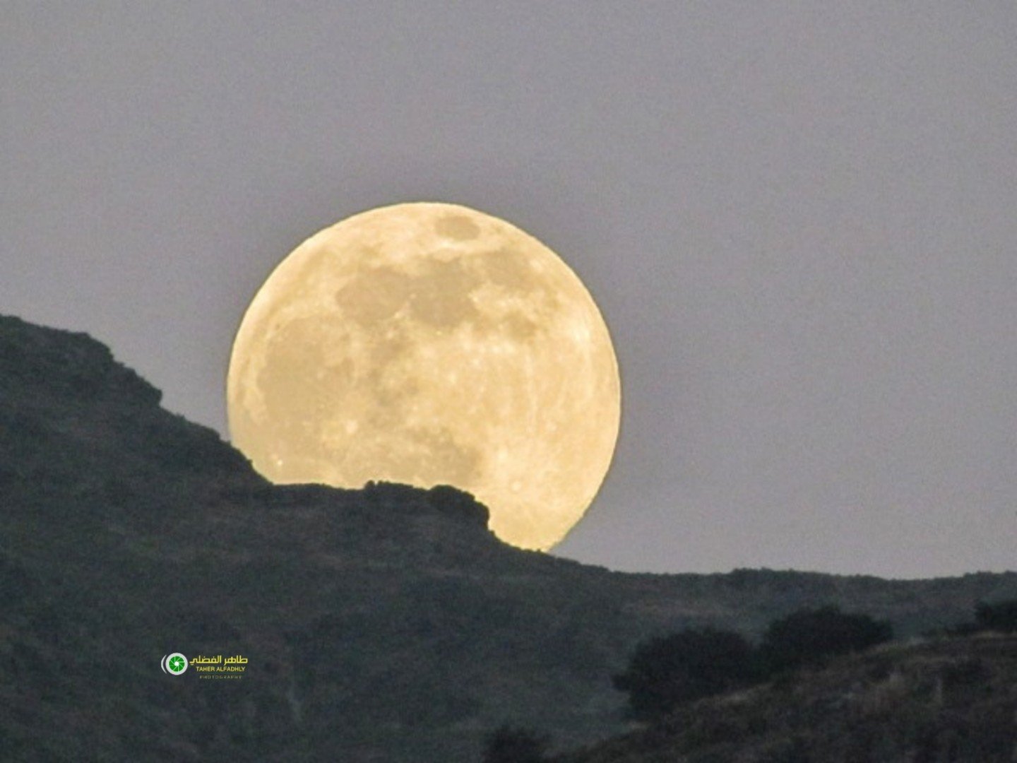 والتقط المصور طاهر الفضلي عدد من الصور للقمر العملاق في جبل بعدان الساعة 05:45 دقيقة مساء الثلاثاء: