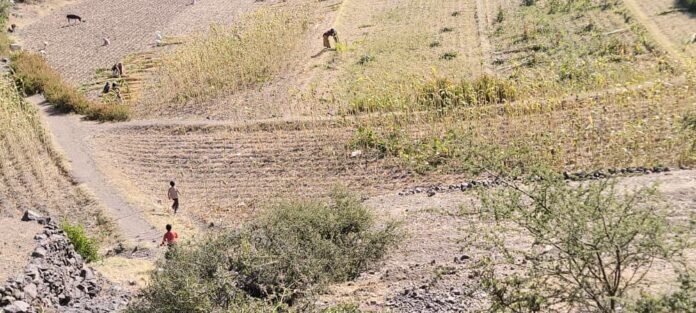 أراضٍ زراعية تأثرت بالجفاف في الموسم الزراعي ولم يحصد المزارعون منها شيئاً (ريف اليمن)